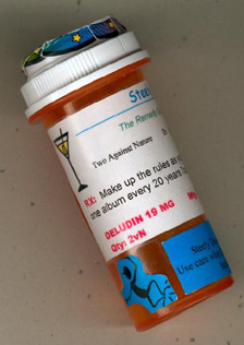 "Deludin Medication Bottles with wonderful labels, courtesy of Amaris in Irvine...." "... a girl calling herself 'Rikki' . Turns out she wasn't exactly a 'favor'-but was worth every penny...er...dollar..."